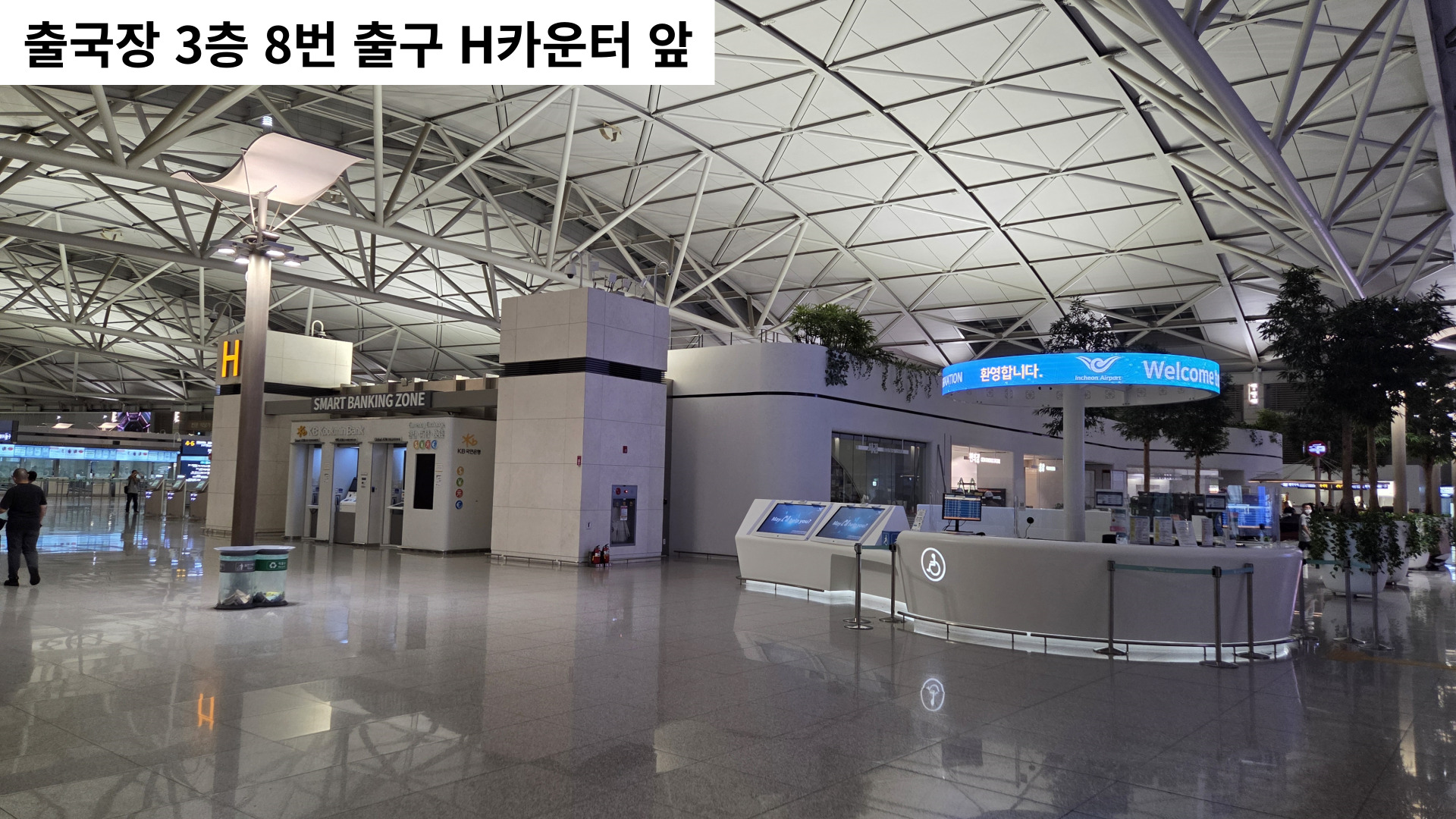 출국장 3층 8번 출구 안쪽 H카운터 앞 도착후